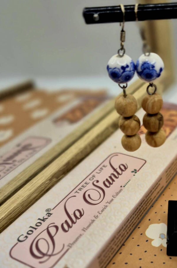 Ces boucles de Palo Santo et perles de bois ou céramique vous permettront de sentir le véritable parfum relaxant de cet arbre magique qui équilibre les énergies et stimule la positivité. Les peuples indigènes des Andes ont utilisé le Palo Santo pour purifier l'énergie négative pendant des siècles. Selon la tradition, le Palo Santo est anti-stress et relaxant. Palo Santo a un agréable parfum rafraîchissant et exaltant. Le parfum de Palo Santo peut aider développer des sentiments positifs et de la joie.