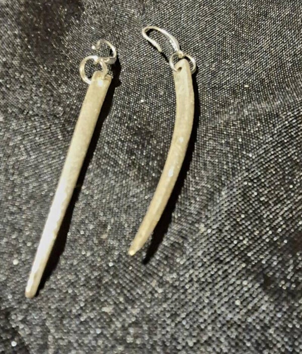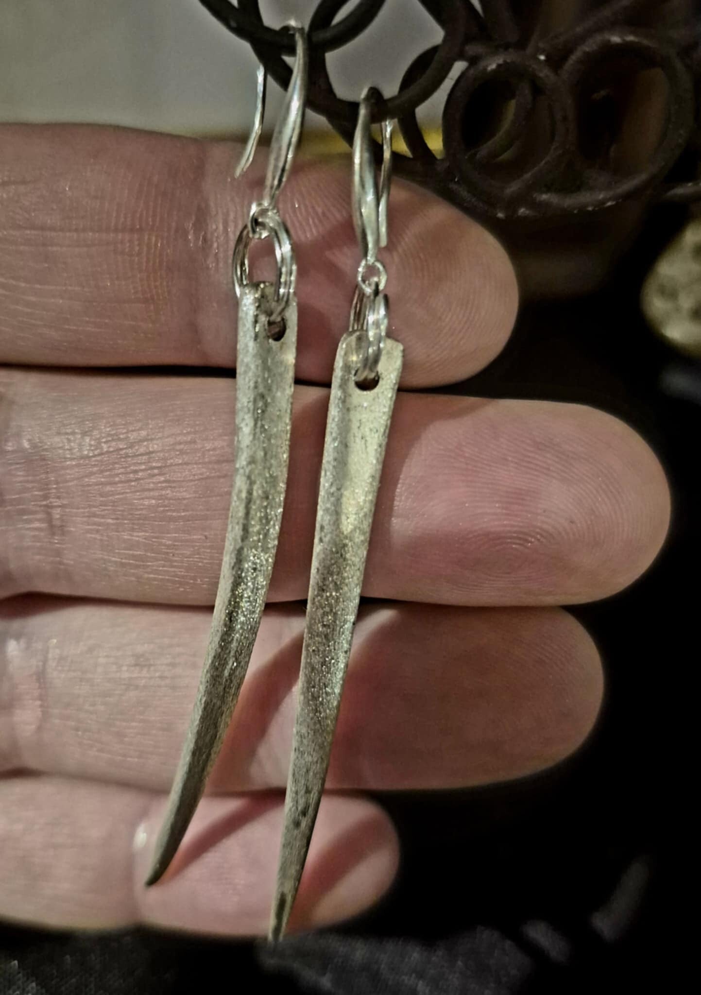 Découvrez cette paire de boucles d'oreilles au design original, conçue à partir de dents de fourchette en argenterie et sublimée par des attaches en argent 925. Chaque pièce est soigneusement façonnée pour transformer un objet du quotidien en un bijou raffiné et unique. L'élégance du métal argenté, associée à la finesse du travail artisanal, confère à ces boucles un style à la fois vintage et moderne. Légères et intemporelles, elles apportent une touche d'originalité à votre tenue tout en incarnant l'art du recyclage créatif. Une création idéale pour les amateurs de bijoux uniques.