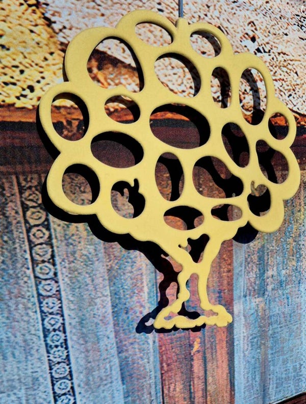 +-40 cm de haut pour cet arbre en effet velour pour ranger ses foulards sans les glisser. couleur crème avec attache ceintre pour l'accrocher à la penderie ou son dressing