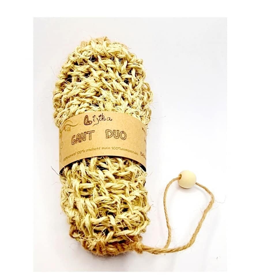 Mes 2 faces différentes permettent un lavage en douceur (coté jute) ou un massage tonifiant (coté sisal) .