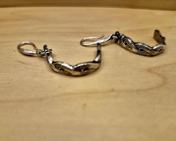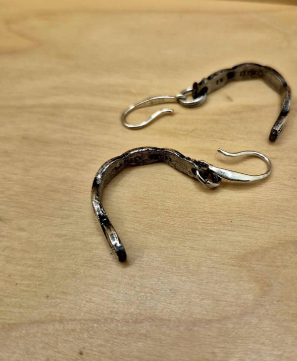 Ces boucles d’oreilles uniques sont réalisées à partir de manches de cuillères ''touristiques", subtilement torsadées pour un design élégant et intemporel. Leur motif délicatement gravé leur confère un charme vintage, tandis que les attaches en argent 925 assurent confort et qualité. Une création artisanale raffinée, parfaite pour les amateurs de bijoux upcyclés et d’accessoires empreints d’histoire.