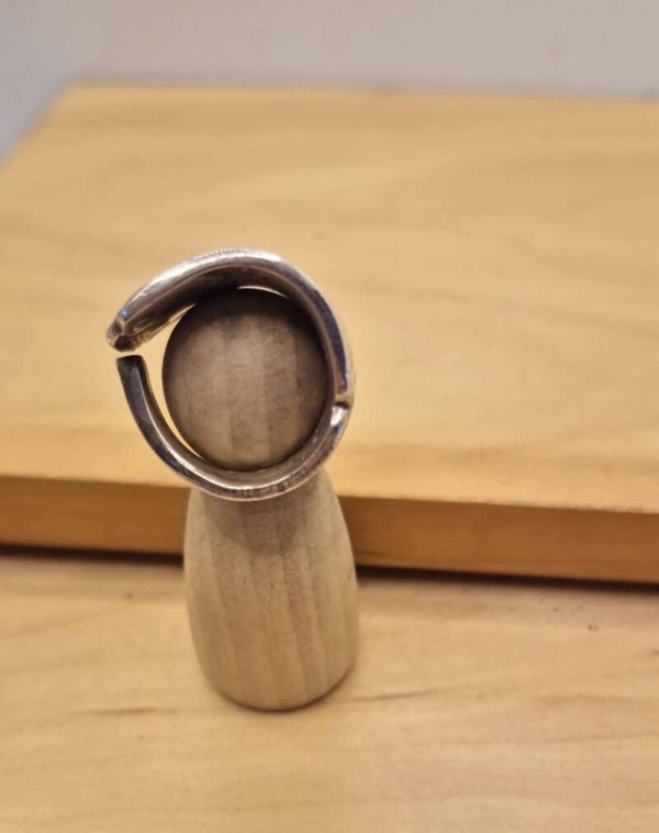 Cette bague unique est réalisée à partir d’un manche de cuillère à café en argenterie, soigneusement poli et façonné à la main. Son design élégant met en valeur les motifs gravés d’origine, avec des arabesques délicates et un relief raffiné qui témoignent du travail artisanal. Son aspect légèrement vieilli lui confère un charme vintage authentique, tout en offrant un confort optimal au porté. Une pièce intemporelle, idéale pour les amateurs de bijoux upcyclés et d’objets chargés d’histoire.