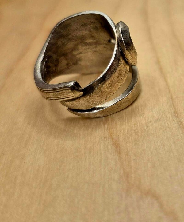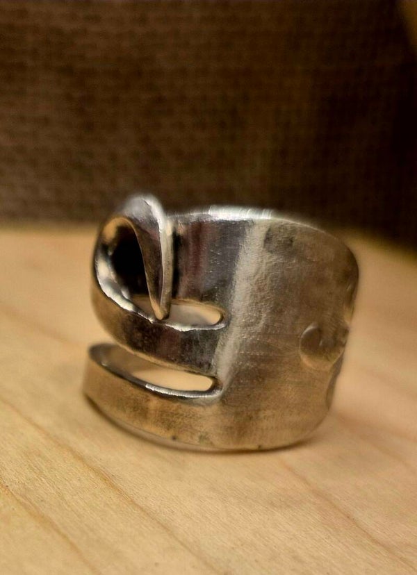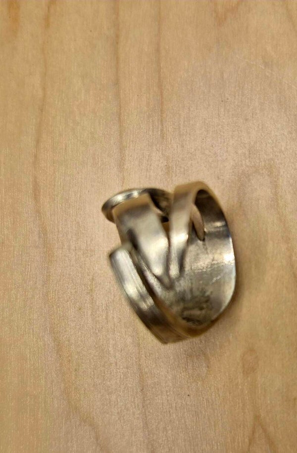 Fourchette 'argenterue à dessert travaillée pour devenir un bijoux unique . Finition mate.