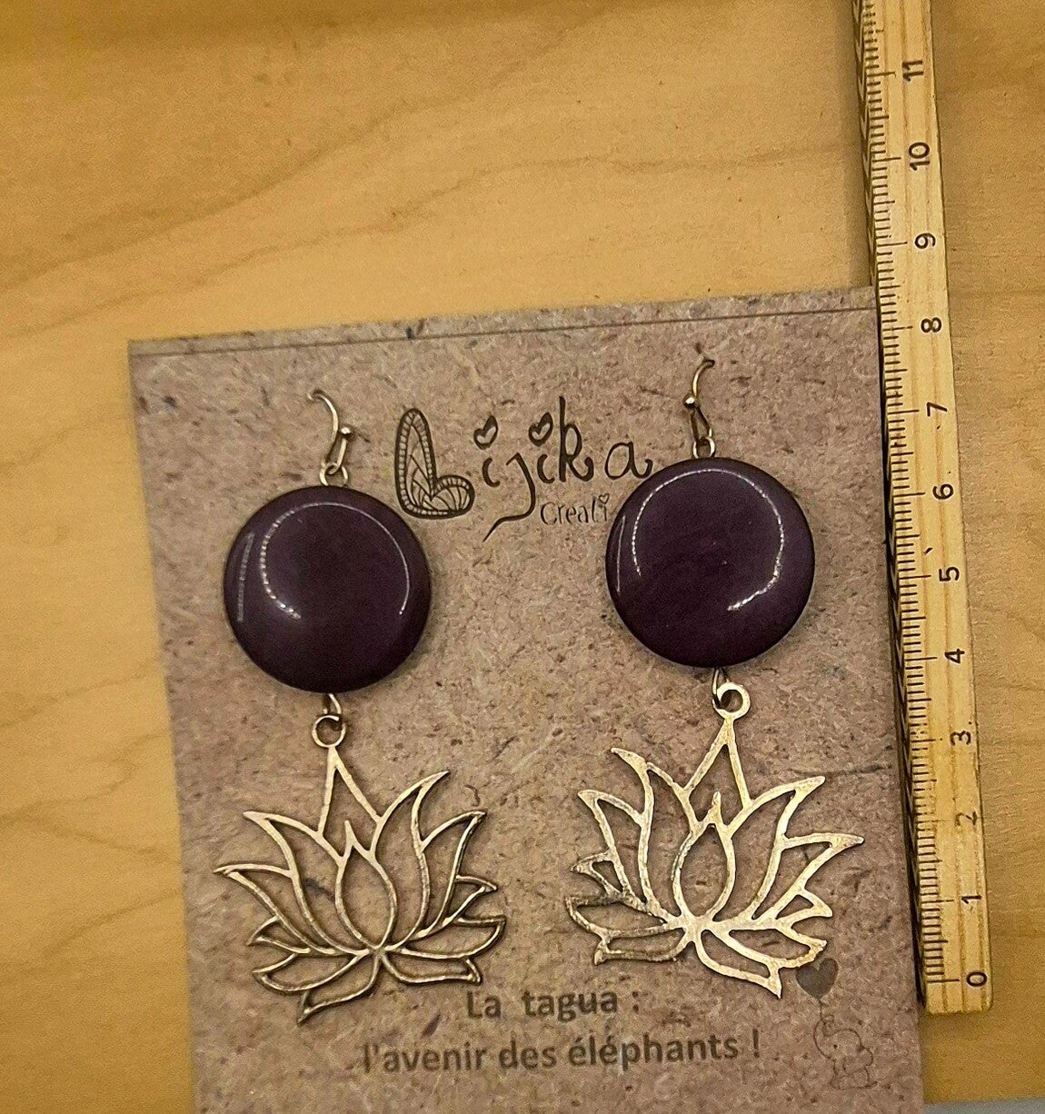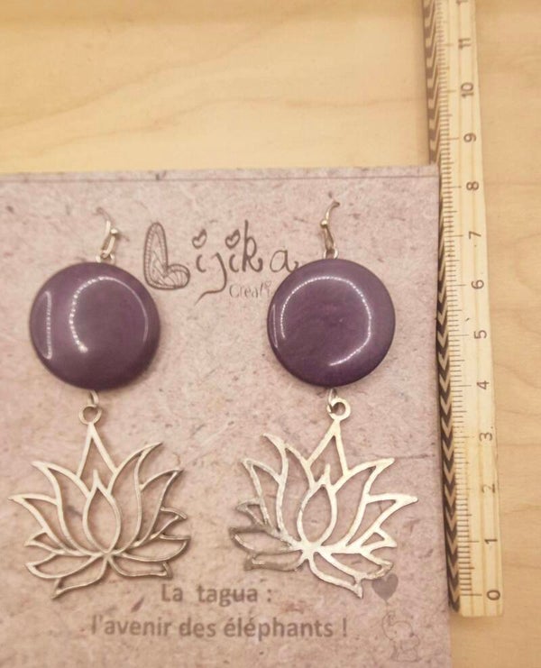 Paire de boucles d'oreilles légères mais voyantes avec perles taillés artisanalement dans la graine de tagua appelée aussi ivoire végétal ou corozo. Cette cosse séchée provient d'un palmier Amazonien qui grandit dans les forêts tropicales humides de L'Amérique du sud. La noix de la plante est connue comme l'ivoire végétal pour son apparence blanc crème pratiquement identique à l'ivoire des défenses d'éléphants.