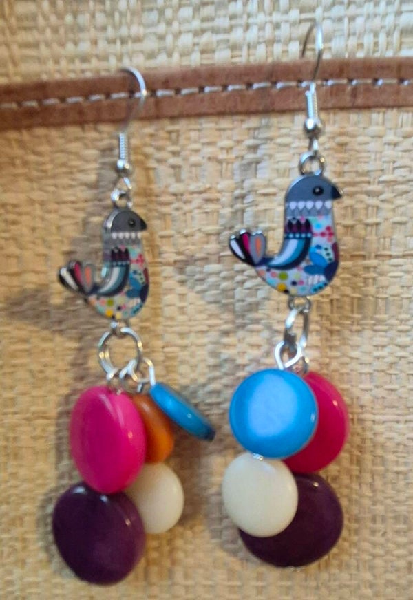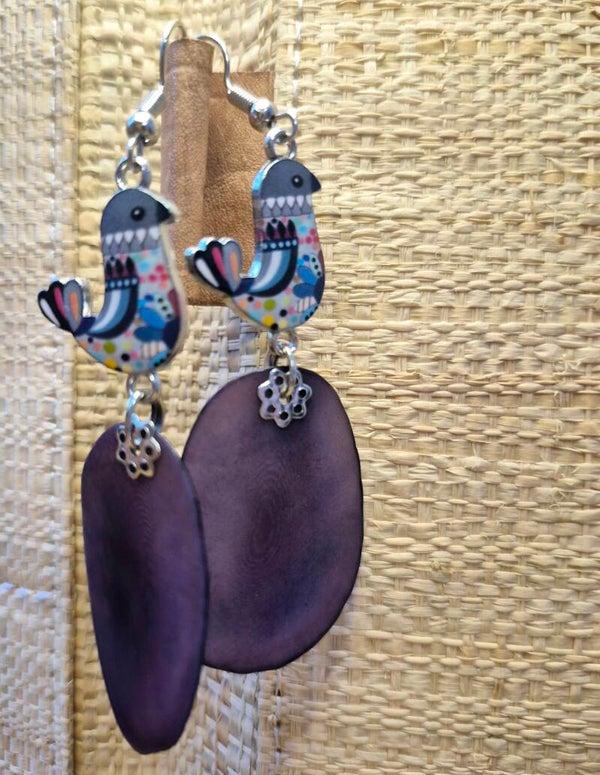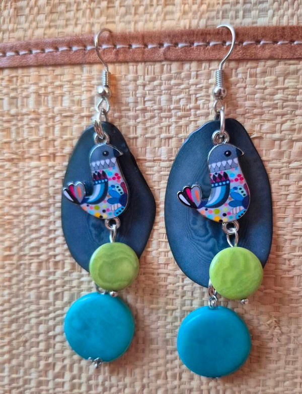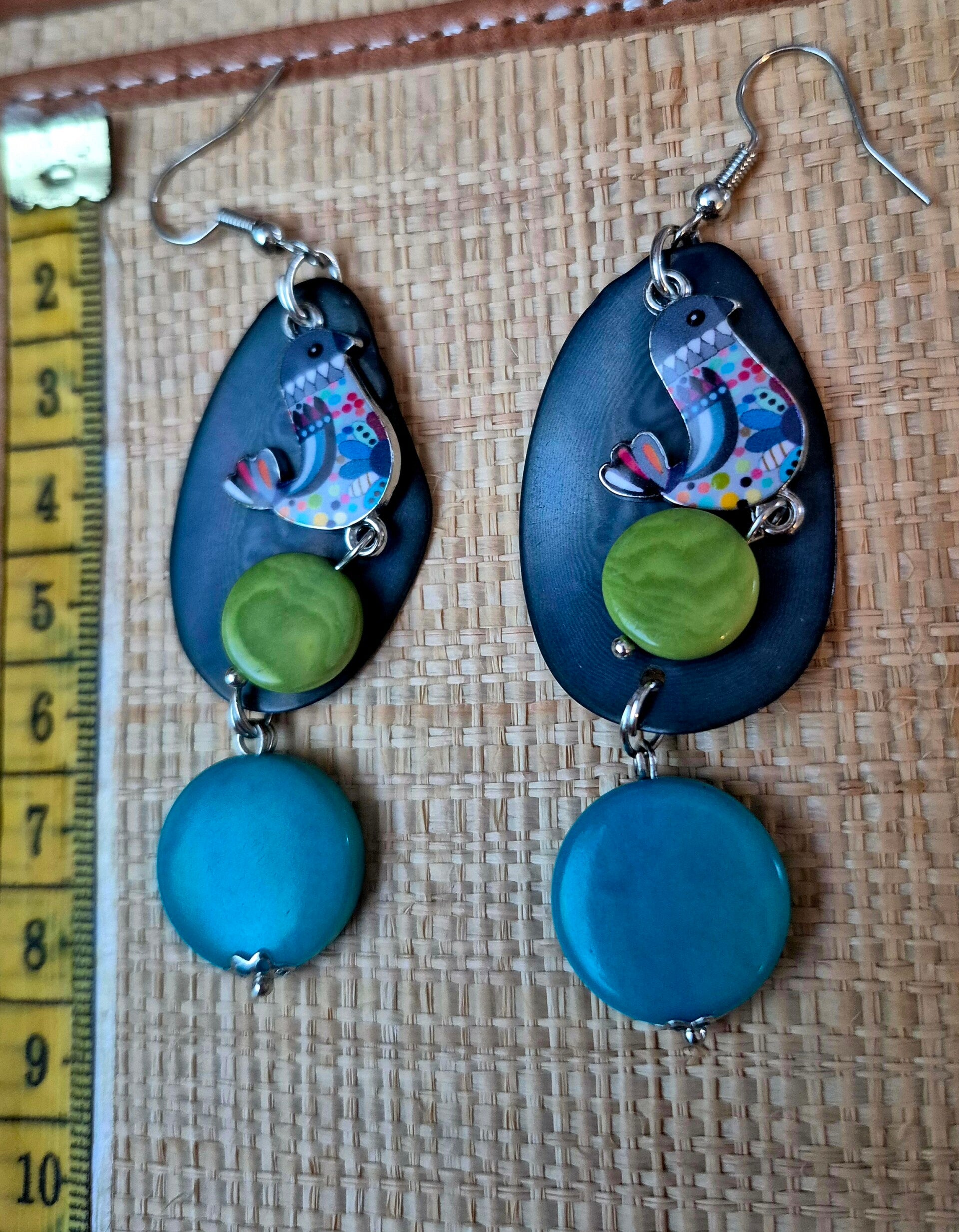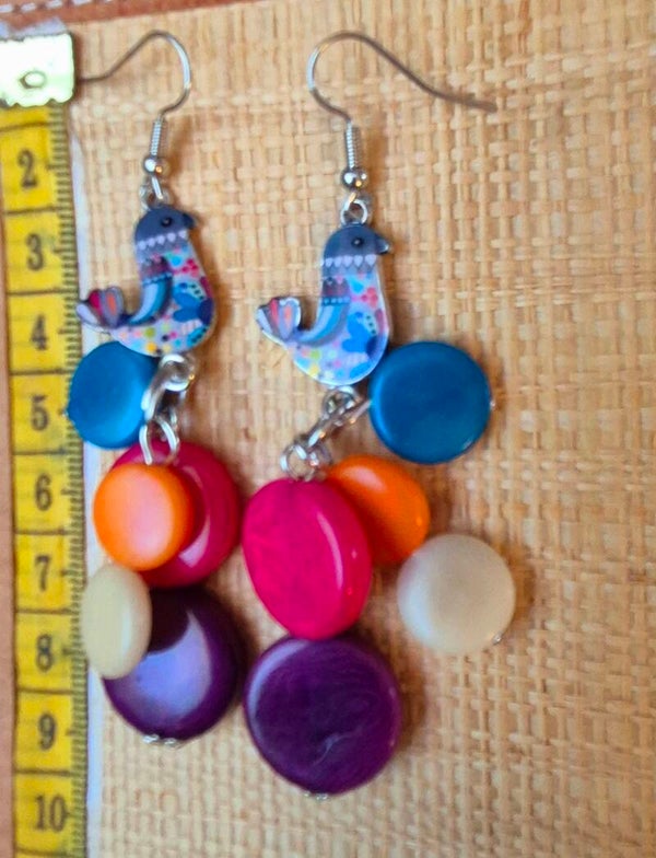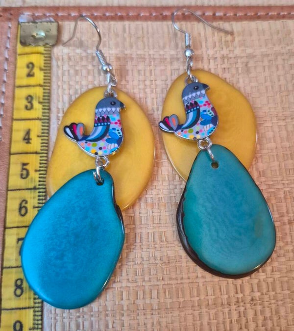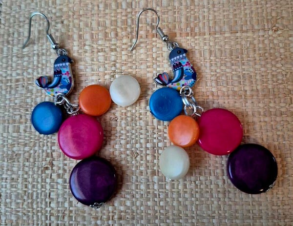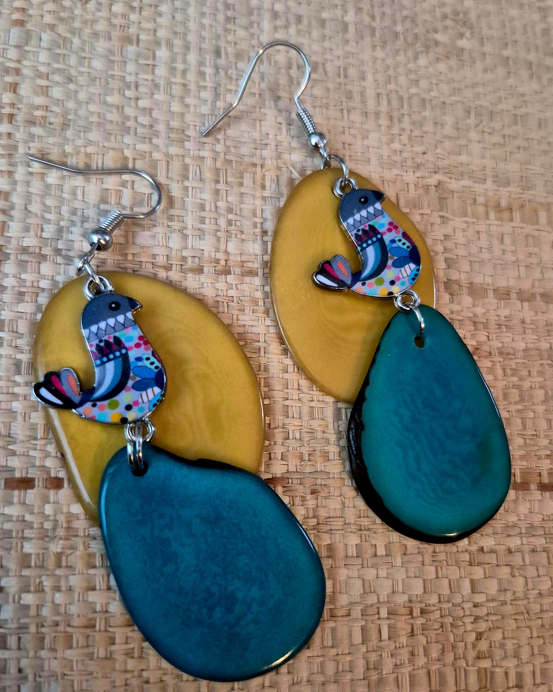 Boucles d'oreilles artisanales taillées dans la noix de tagua appelée ivoire végétal. Colorées et ultra légères, ces couleurs peps sont tendances pour cette collection printemps/été