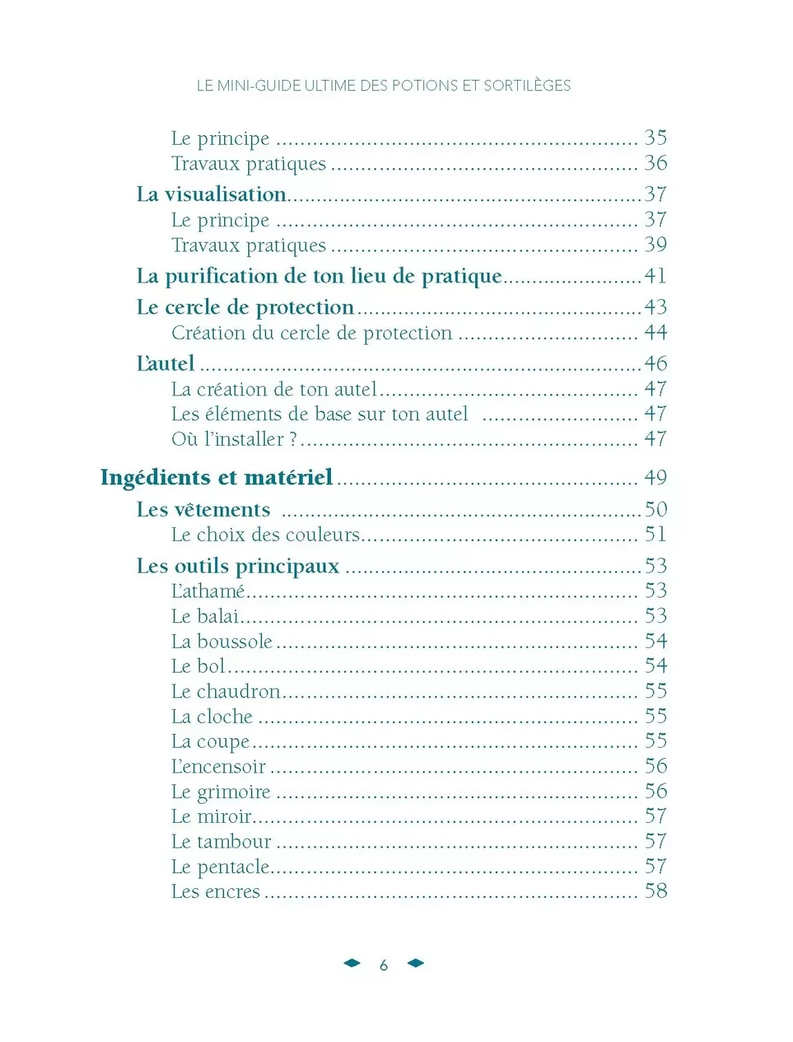 Vous vous sentez une âme de sorcière, vous aimeriez pratiquer la magie blanche mais vous ne savez pas par où commencer ? Ce guide contient toutes les informations dont vous avez besoin pour apprendre à préparer des potions et des sortilèges. Vous découvrirez le matériel nécessaire à la pratique de la sorcellerie, les incantations pour préparer, purifier mais aussi consacrer votre espace et vos ingrédients, les précautions à suivre pour un sort réussi, ainsi que de nombreuses recettes de potions et sortilèges. Philtre d’amour, potion de protection, de chance, de santé ou encore élixir de prospérité, apprenez à les concocter à base d’ingrédients simples et