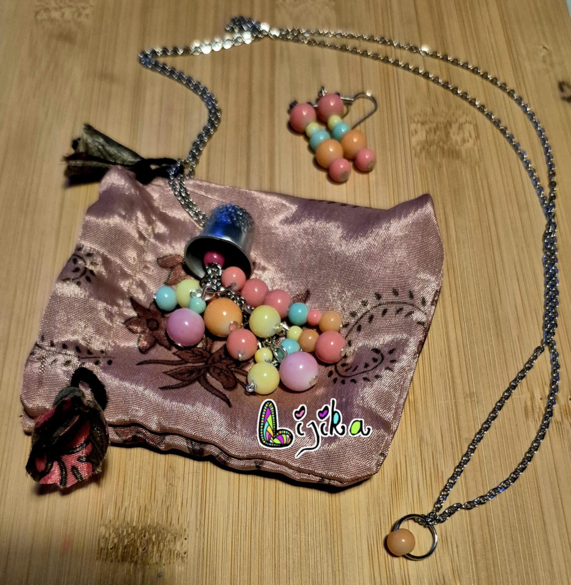 Ce sautoir acidulé unique est une véritable œuvre d'art, alliant vintage et modernité. Il est fabriqué à partir d'un ancien dé à coudre, symbole de savoir-faire et d'histoire, réinventé pour créer une pièce originale. Des perles revalorisées viennent sublimer ce pendentif, apportant douceur et élégance à l'ensemble. Chaque détail a été minutieusement travaillé pour offrir une touche d'authenticité et de raffinement. Un ensemble chargé de sens et de souvenirs, tout en restant résolument tendance.