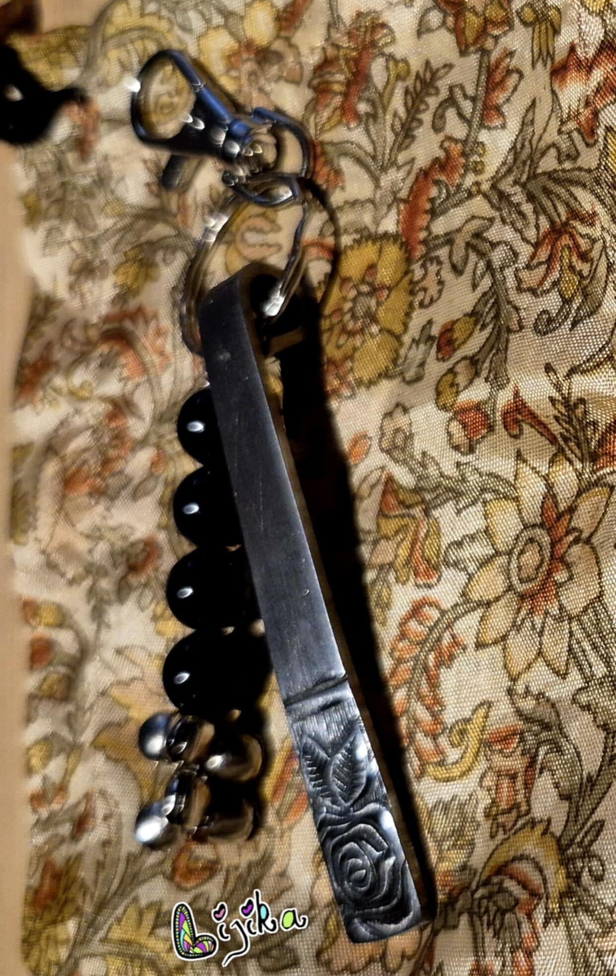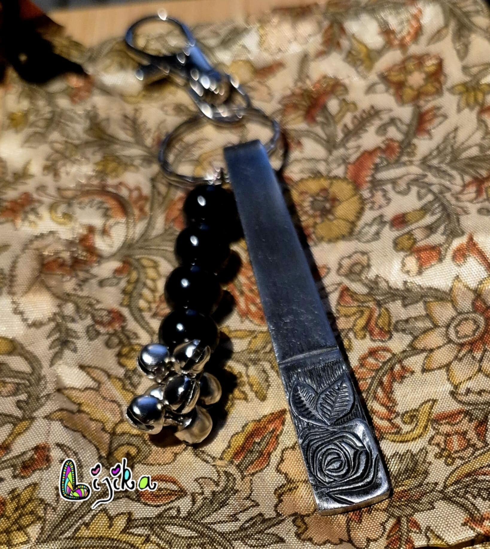 e porte-clé est une pièce unique, fabriquée à la main à partir d’un véritable manche de couvert en inox.